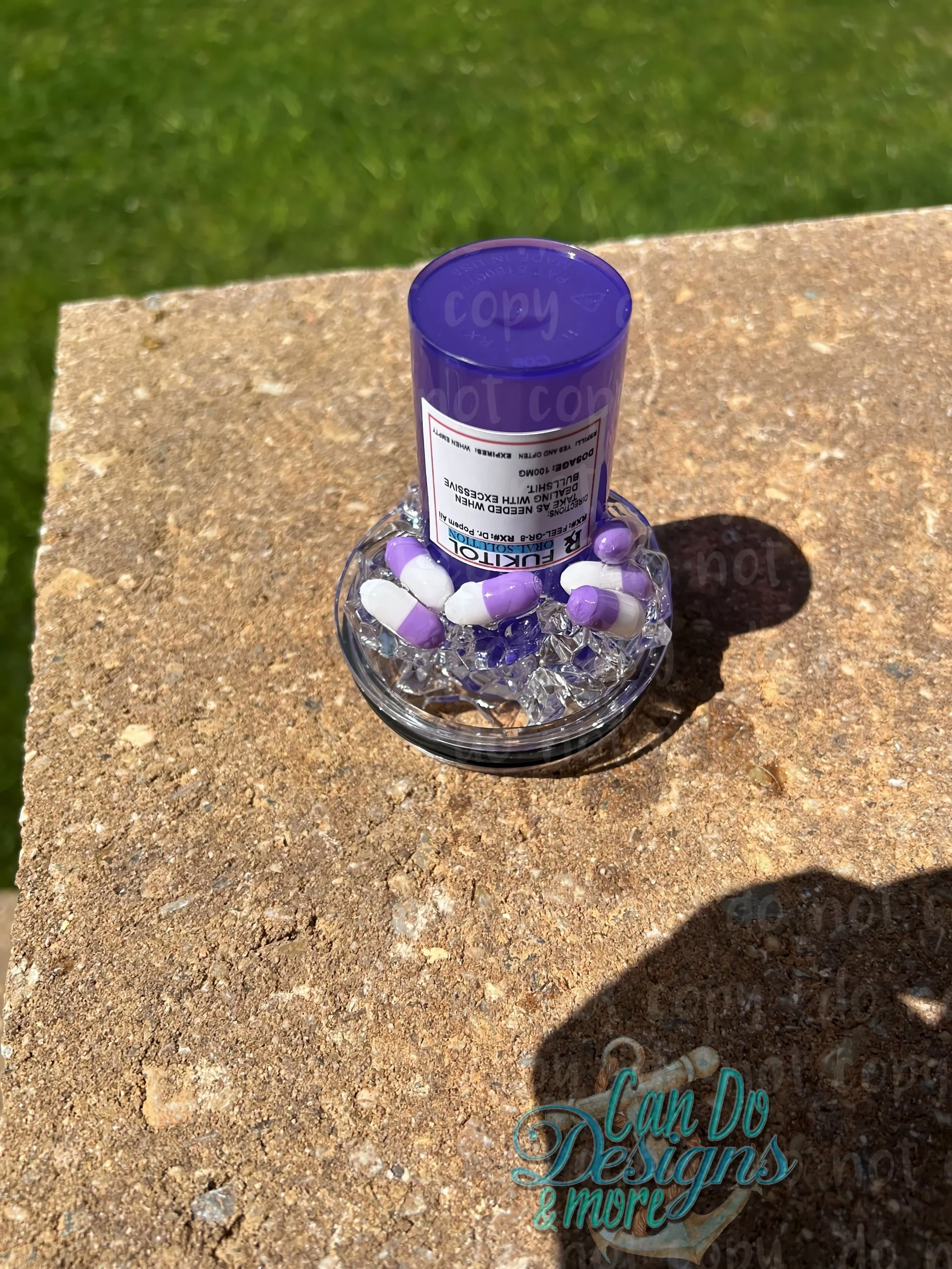 FUKITOL Purple Prescription Pill Bottle Tumbler Topper, Fake 3D Ice for 30oz or 20oz Skinny Straight Tumbler; Best Selling Nurse Gift; Hot