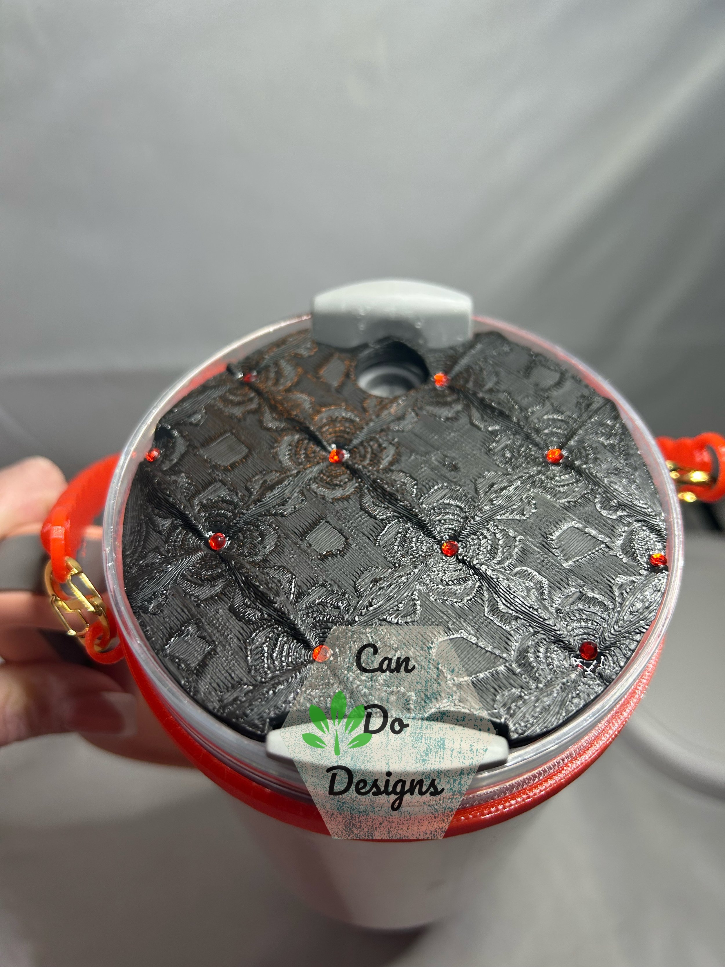 Black Quilted Red Rhinestone topper for 40oz or 20/30oz Stanley Quencher Tumbler lid H2.0